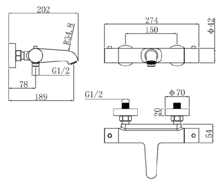 Regn thermostatische badmengkraan mat zwart. Thermostaatkraan met aansluiting voor handdouche en omstelfunctie. Mooie badthermostaat bijpassend aan het mat zwart assortiment van Regn.