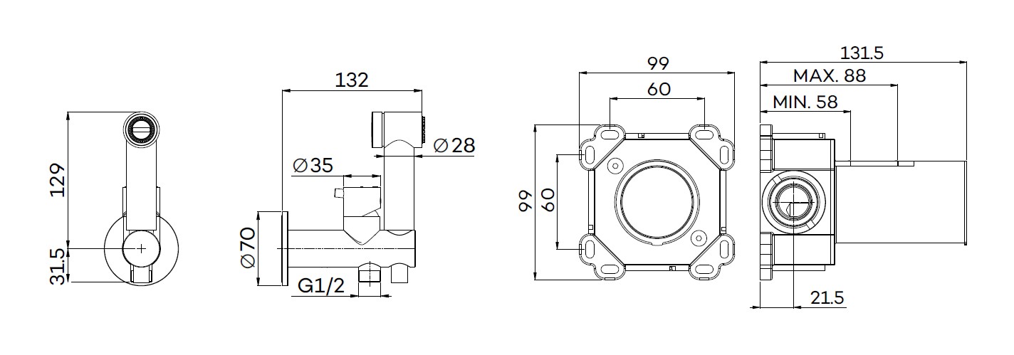 Lagoo G4200 bidetmengkraan kleur champagne. Deze bidet handdouche wordt compleet geleverd met mengkraan, douchekop en slang maar tevens ook het losse inbouwdeel. Oftewel een complete bidetinrichting voor naast het toilet!