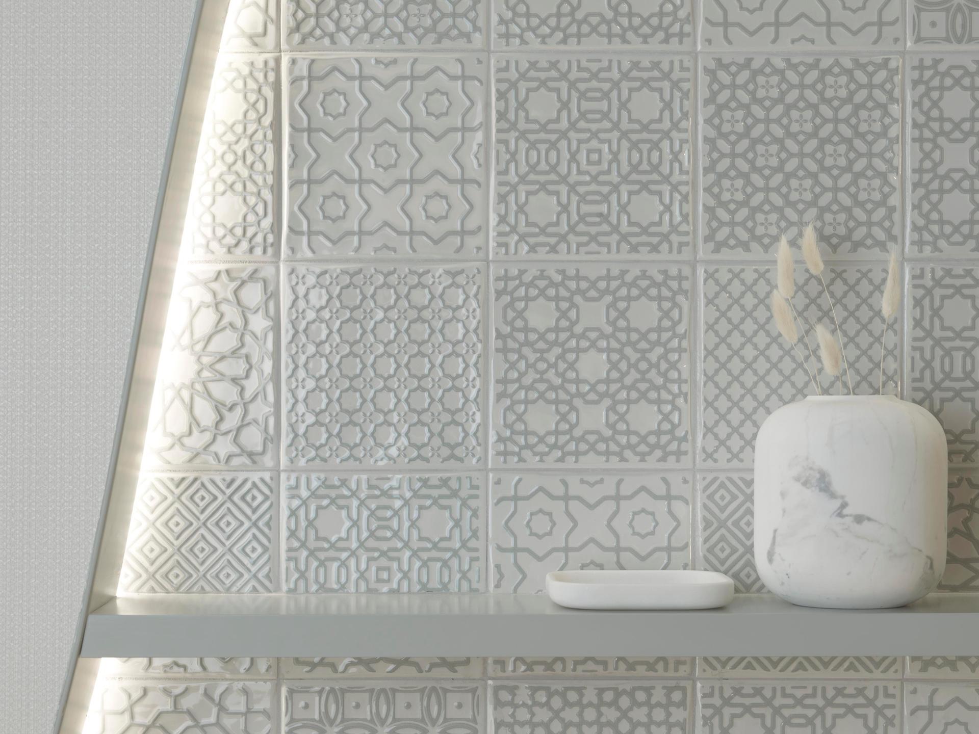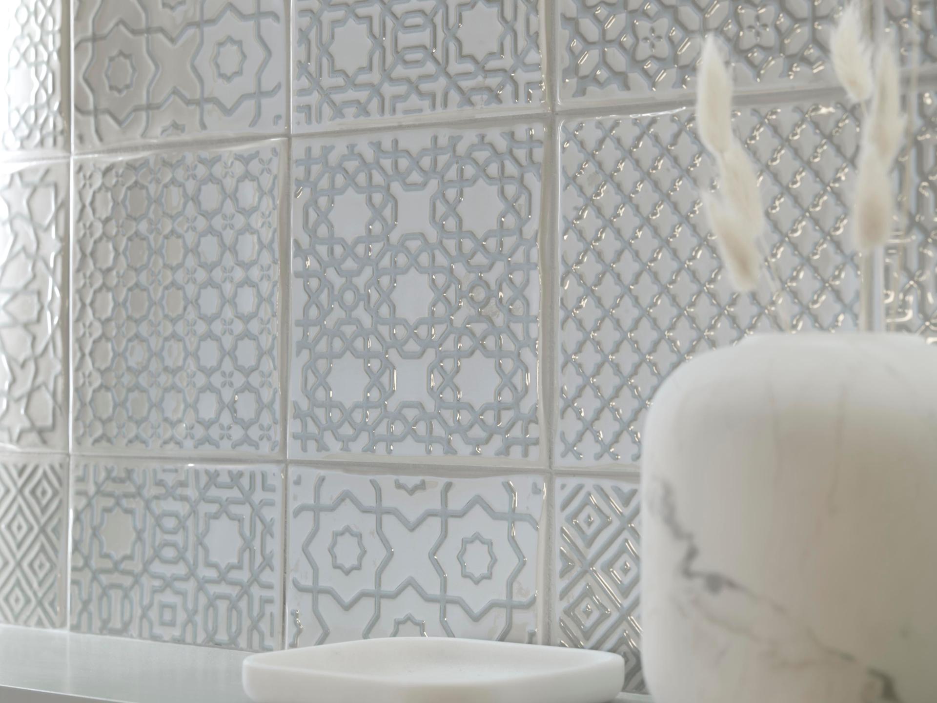 L’Antic Colonial Ronda deco verdigris wandtegel. Glanzende wandtegel met een grijs/creme kleurige decor. De grillige vormen van de tegel geven een klassiek, handgevormd effect mee. Ook te combineren met de unitegel uit de Ronda serie.