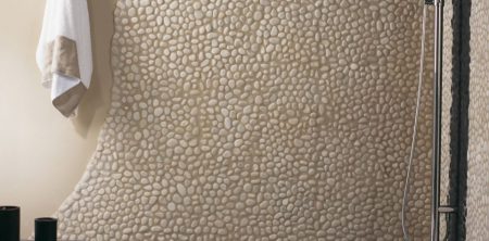 Kiezel mozaiek L’Antic Colonial Paradise Baia stone cremas. Mozaiek bestaande uit bolle kiezels in verschillende maten. Te gebruiken op zowel vloer als wand. Prijs per matje.